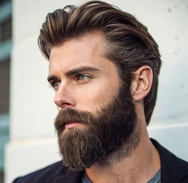 Barba completa – Clásica y poblada, cubre todo el rostro.