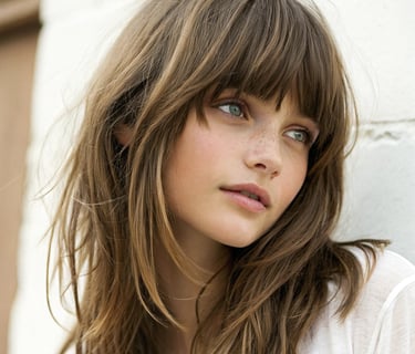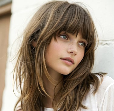 Flequillo estilo cortina: Un flequillo suave y desenfadado que enmarca la cara de forma natural.