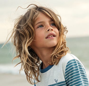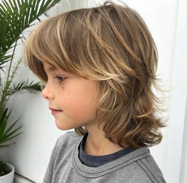 Estilo surfero: Cabello más largo y desenfadado, ideal para niños con cabello ondulado.