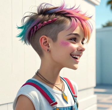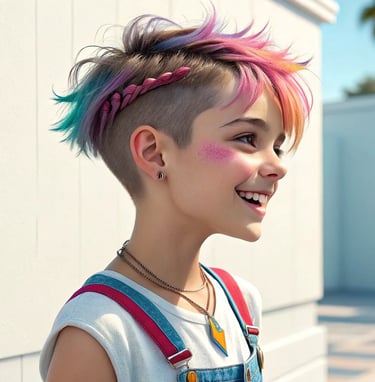Spiky: Cabello corto peinado hacia arriba en puntas, ideal para un look juvenil.